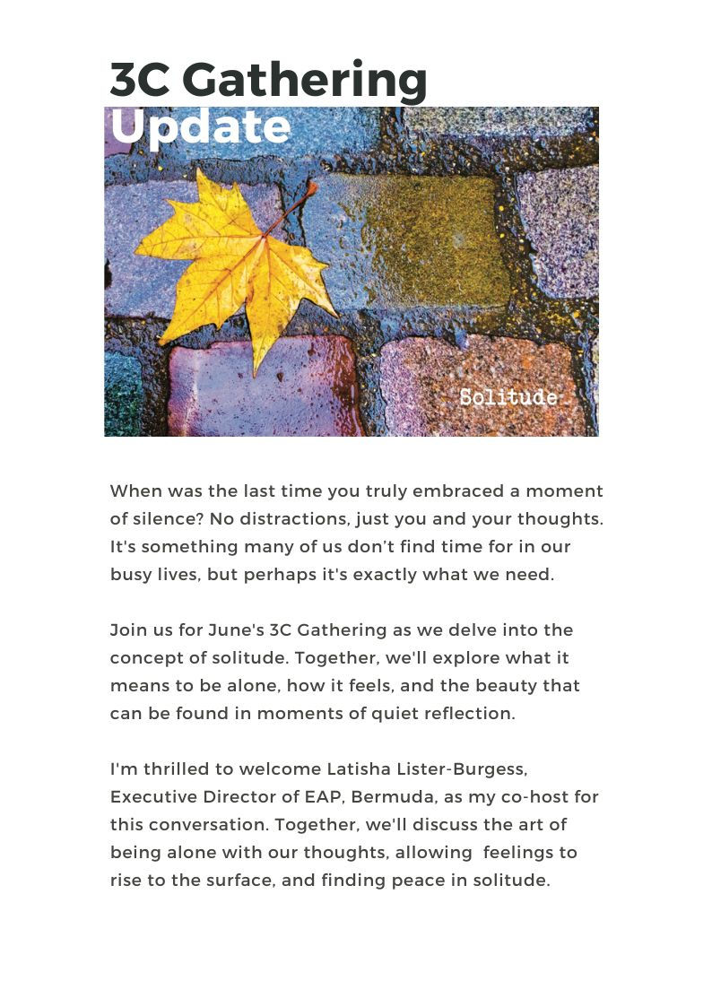 3C Gathering - SolitudeMay 18, 20241 min readJoin the conversation and together let's explore the topic of solitude. Register today.